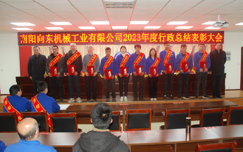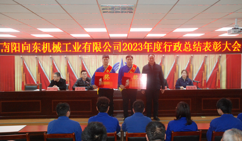 總經理冀紅波宣讀了《關于表彰2023年度先進集體和先進個人的決定》。南陽向東機械工程有限公司等2個單位獲得“紅旗單位”稱號;鄭州向東機械裝備有限公司等5個單位獲得“先進單位”稱號;劉飛等2名同志獲得“勞動模范”稱號;李家成等21名同志獲得“先進生產(工作)者”稱號;胡銘等7名同志獲得“優秀中層管理者”稱號;公司領導向獲獎單位和先進個人進行了頒獎。